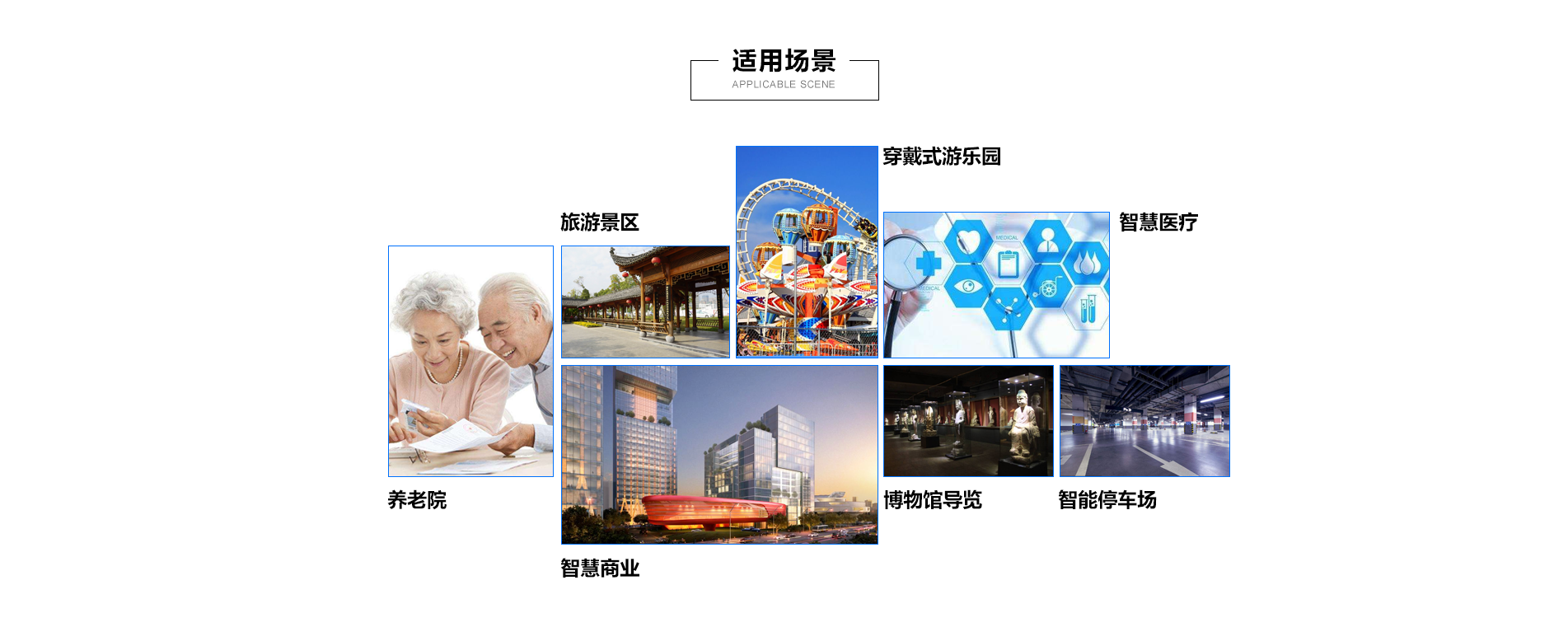 结合各类的物联网应用,医院电子导医、大型室内建筑定位导航、智能停车、信息推